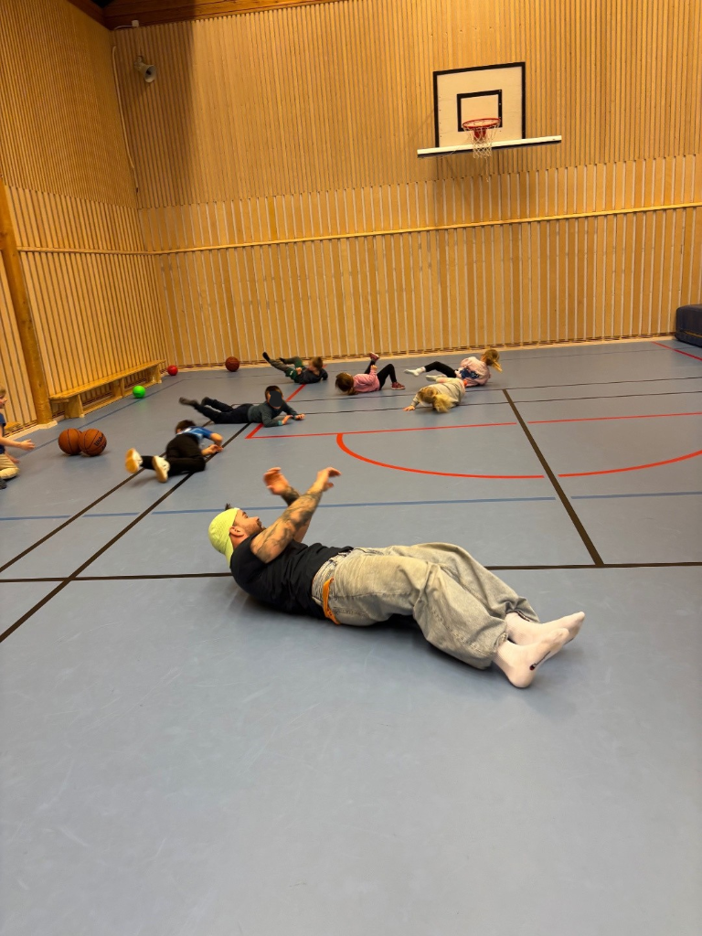 I gymsalen legger vi til rette for aktiviteter som hinderløyper, dans, ballek og frilek. Barna kan bruke hele kroppen, utfordre seg selv og opleve mestring.