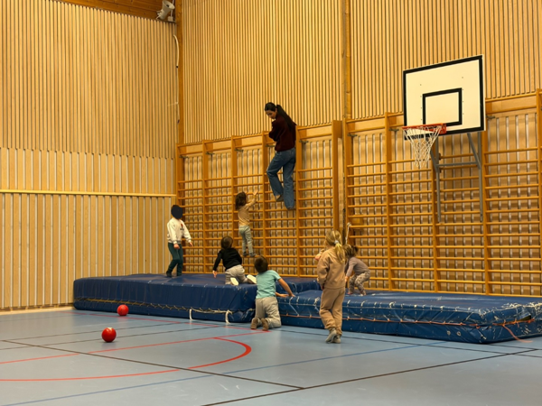 I vinterhalvåret har vi begynt med gymsal som en fast del av barnehagens pedagogiske tilbud. Dette gir barna gode og varierte muligheter for fysisk aktivitet, hvor målet vårt er å sikre daglige erfaringer med bevegelse og bevegelsesglede!